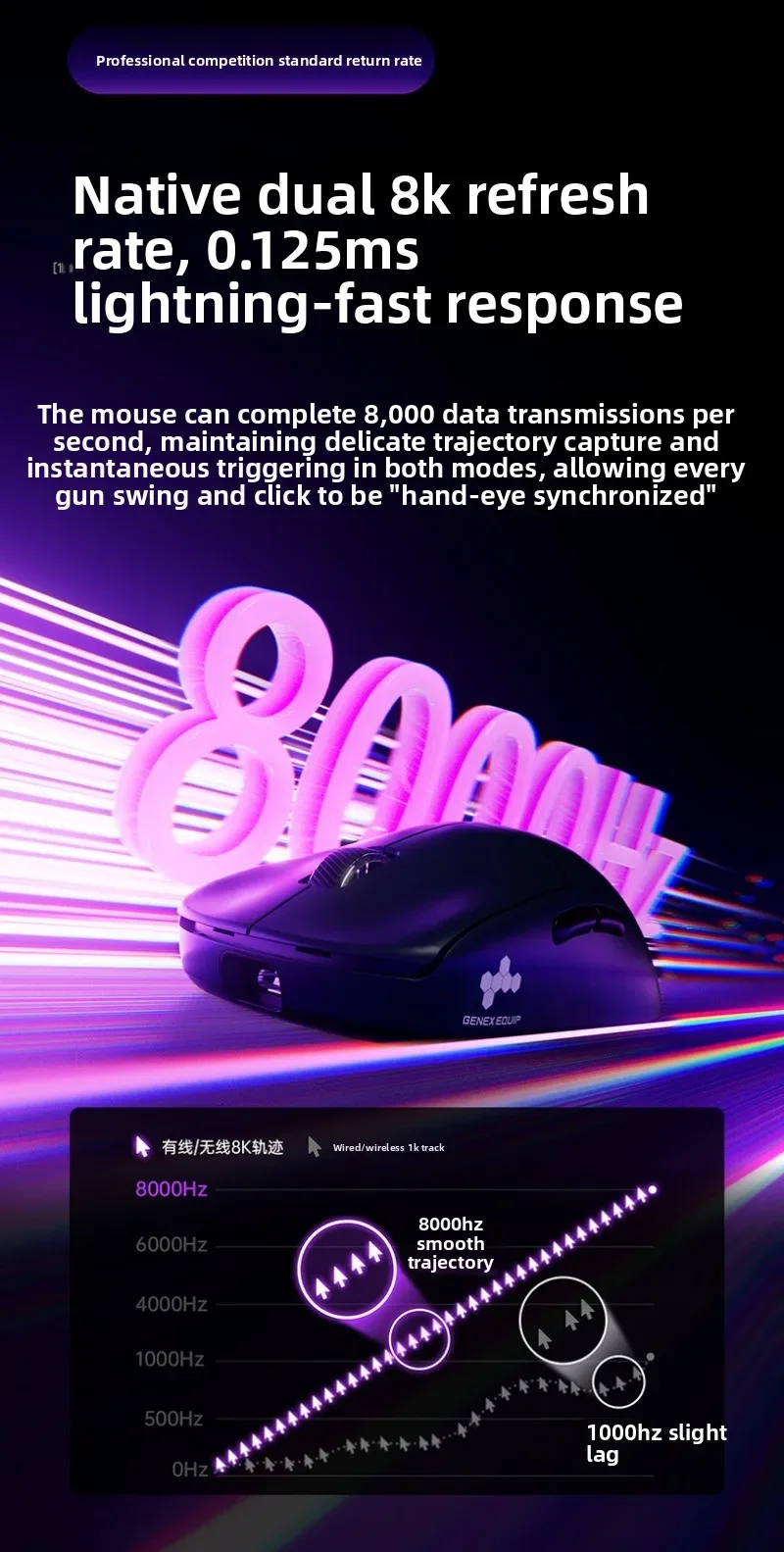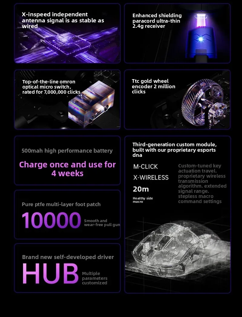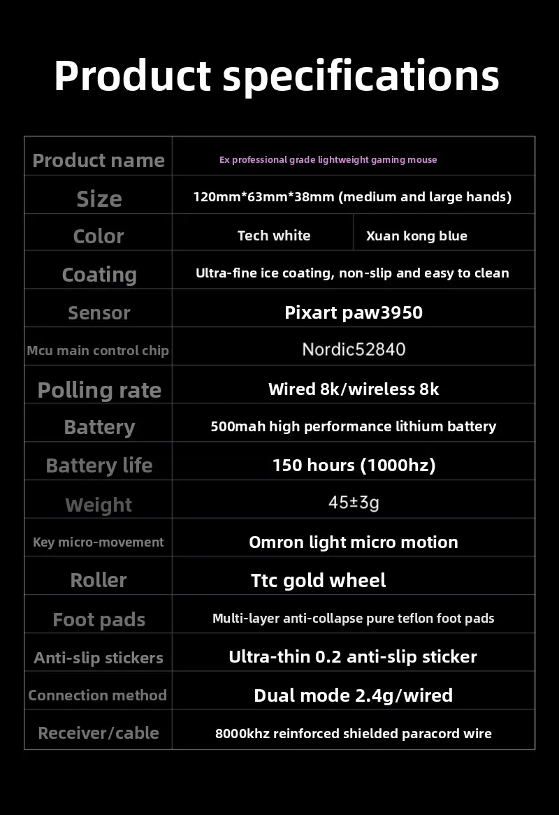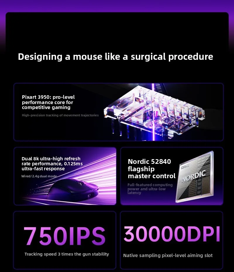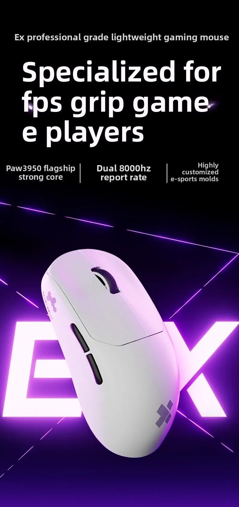 XIBERIA EX Wireless Mouse Double 8k PAW3950 Low Latency and Stable Performance Ergonomics Esports Gaming Mouse PC Accessories